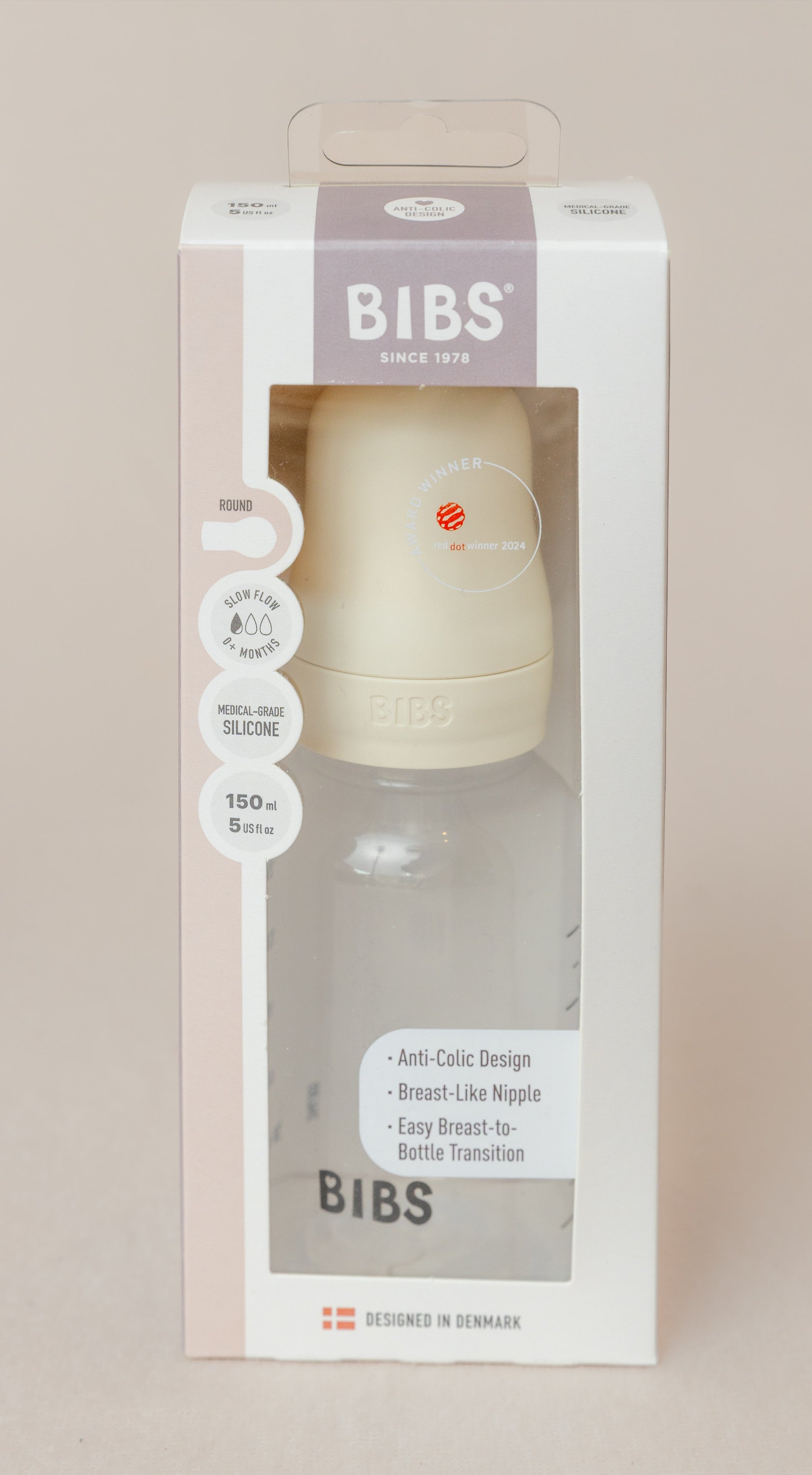 The BIBS Baby Bottle Round (1 Pack, Slow Flow) is designed to make feeding time calm, comfortable, and natural for your little one. Crafted from high-quality, safe materials, this bottle pairs seamlessly with the BIBS slow-flow nipple, allowing newborns to feed at a gentle, controlled pace — ideal for mimicking the natural breastfeeding experience.