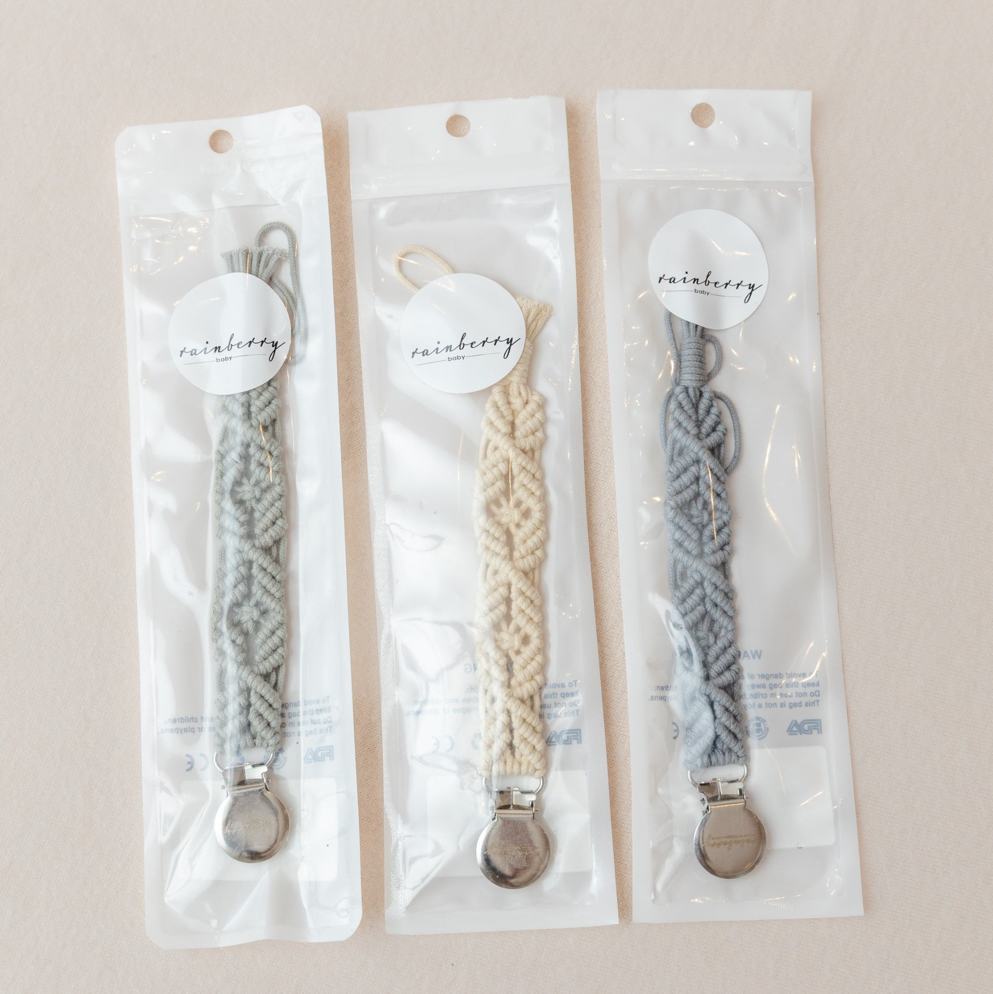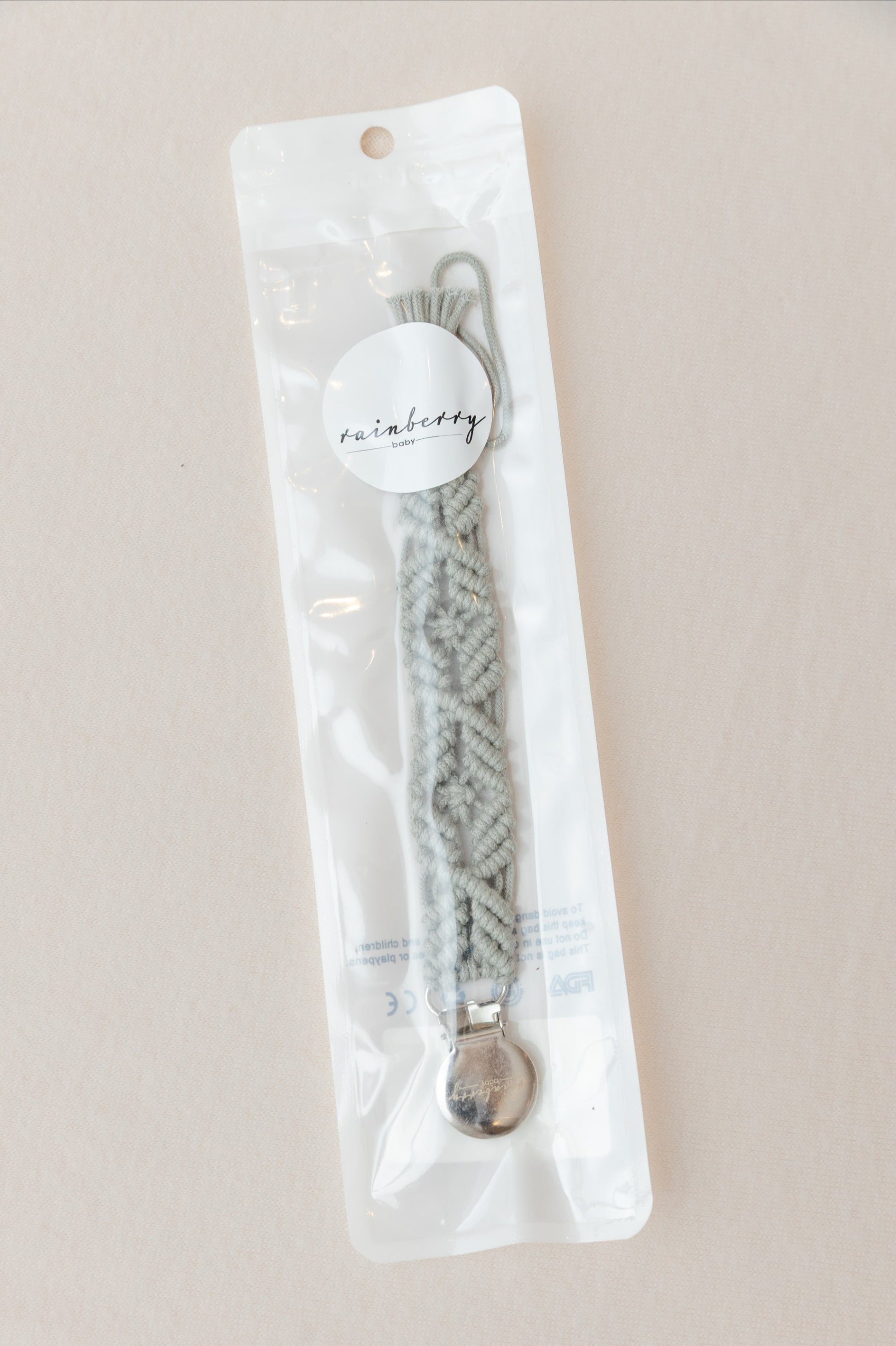 The Macrame Dummy Clip from Rainberry Baby is a beautiful and practical accessory designed to keep your baby’s dummy secure and within reach. Handcrafted from soft, durable materials, it’s gentle on delicate skin while adding a touch of boho charm to any outfit.